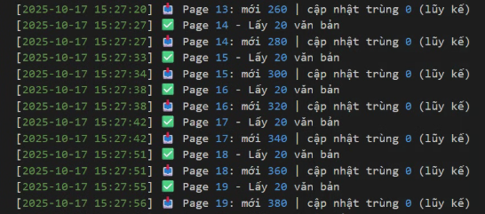 log(f"✅ Hoàn thành. Thêm mới: {total_new} | Cập nhật trùng: {total_dup_updates}") log(f"⏱️ Từ: {start_time} → {datetime.now()}")