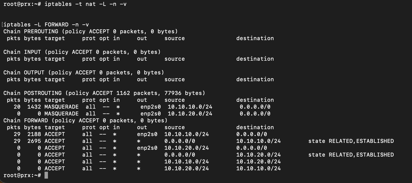 2 dòng MASQUERADE (10.10.10.0/24 và 10.10.20.0/24)