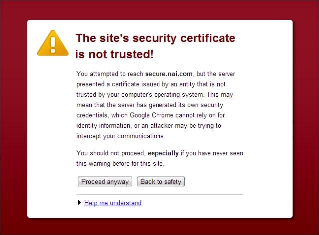 • Trình duyệt hiển thị cảnh báo nghiêm trọng