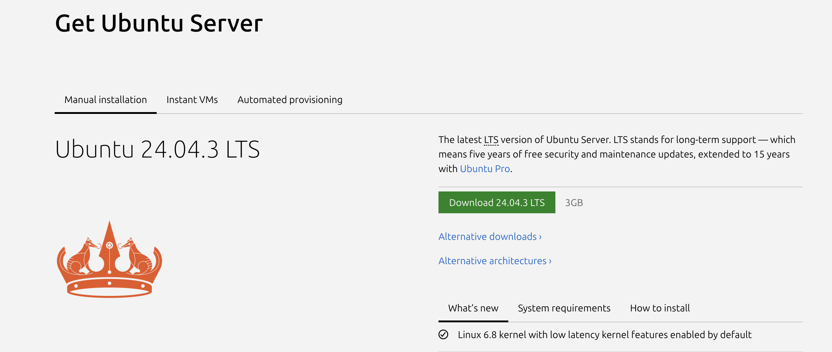 • Đã chọn Ubuntu Server LTS (khuyến nghị 22.04 LTS - thời điểm bài viết 12/2025)