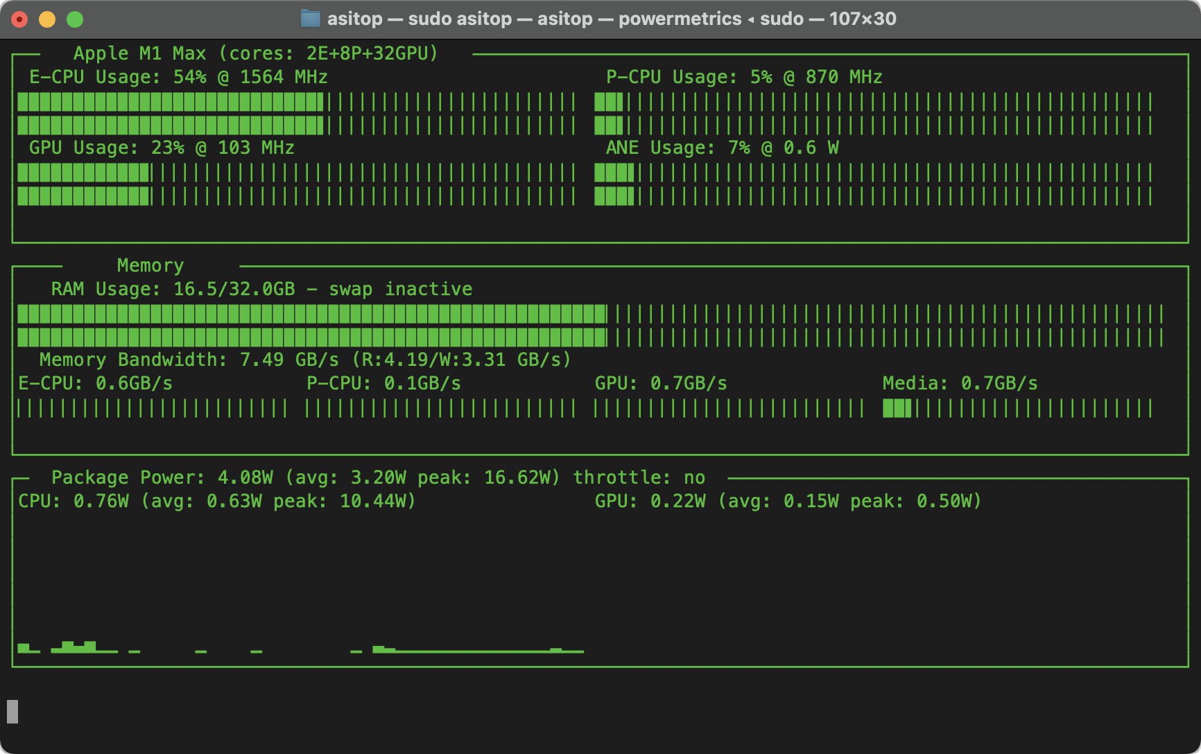 | Chạy lệnh | sudo asitop |