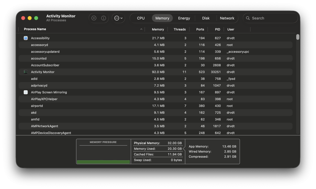 👉 20.47 GB / 32 GB ≈ 64% RAM đang dùng → hoàn toàn bình thường.