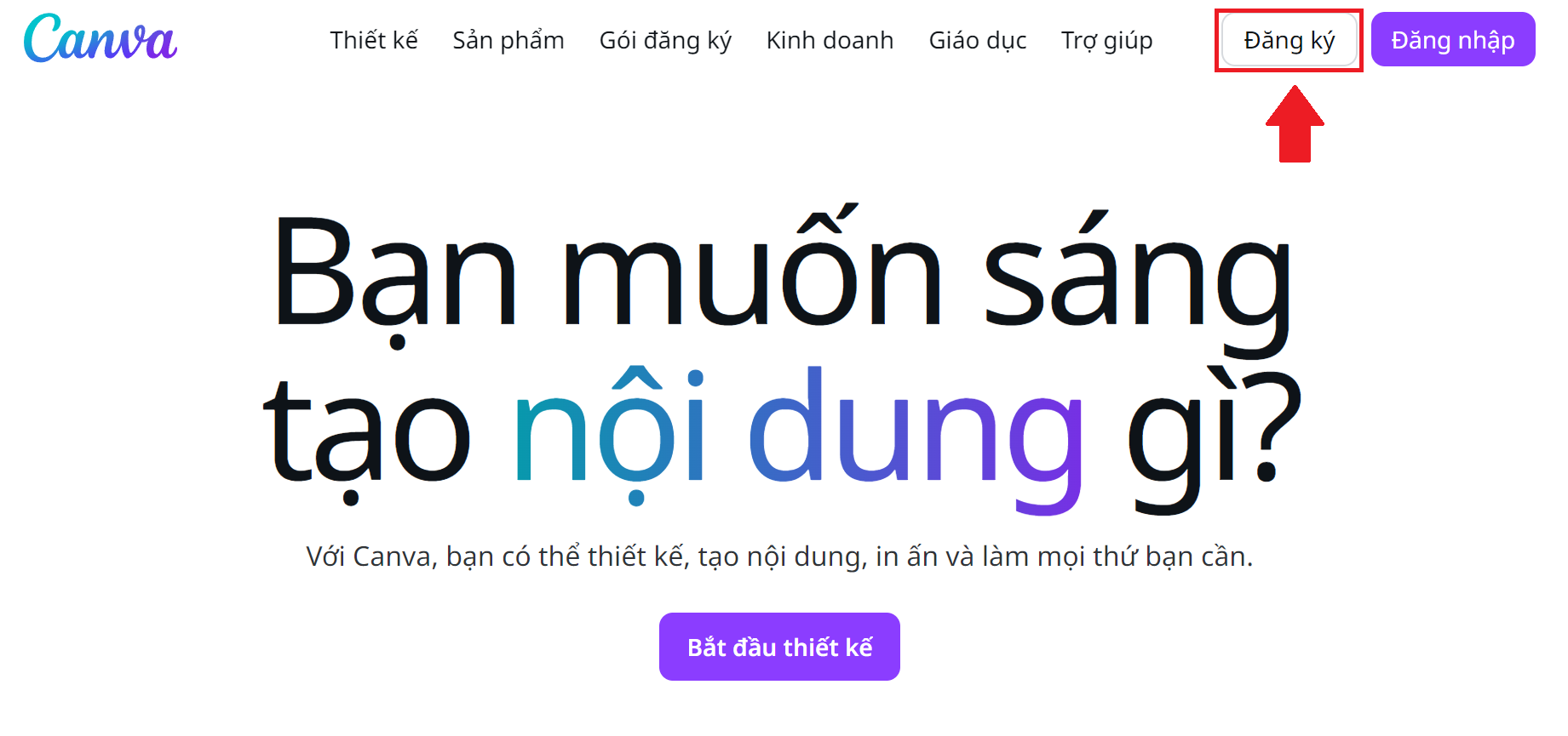 - Tại trang chủ của Canva, sẽ có nút "đăng ký" ở bên phải góc màn hình. Ấn vào đó để bắt đầu quá trình đăng ký tài khoản.