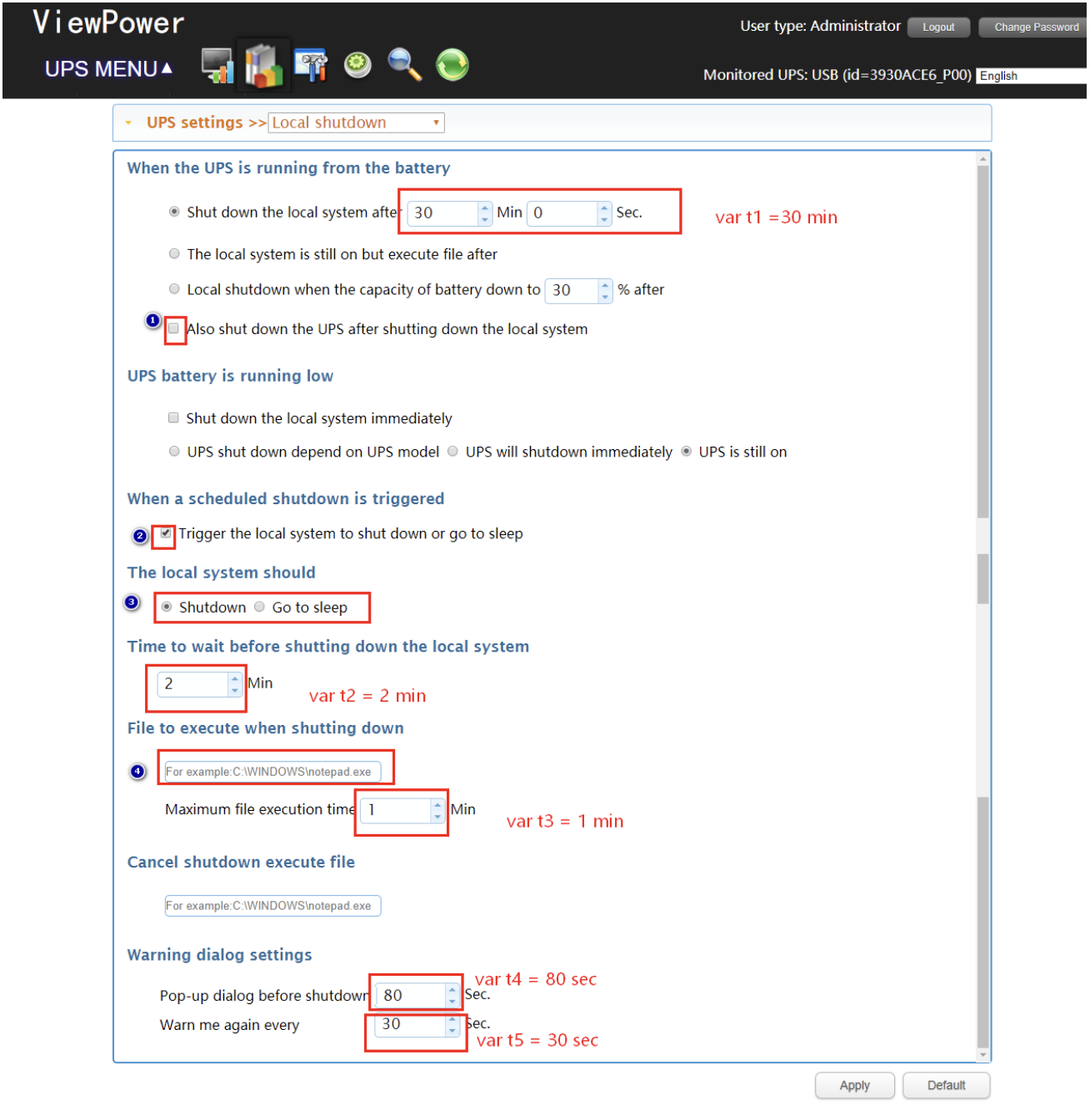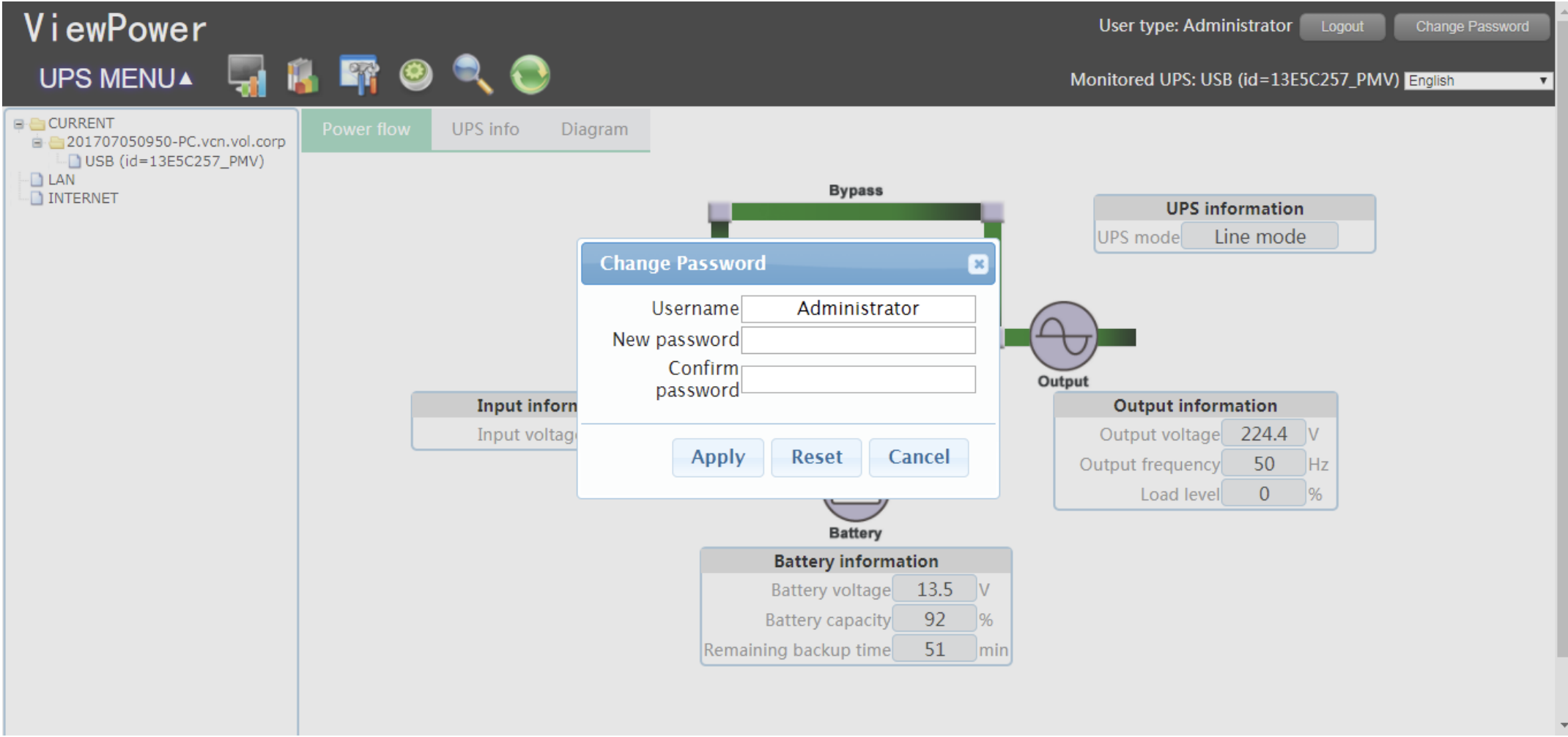 - Cần đăng nhập bằng tài khoản admin. Mật khẩu mặc định của UPS Prolink là administrator luôn.