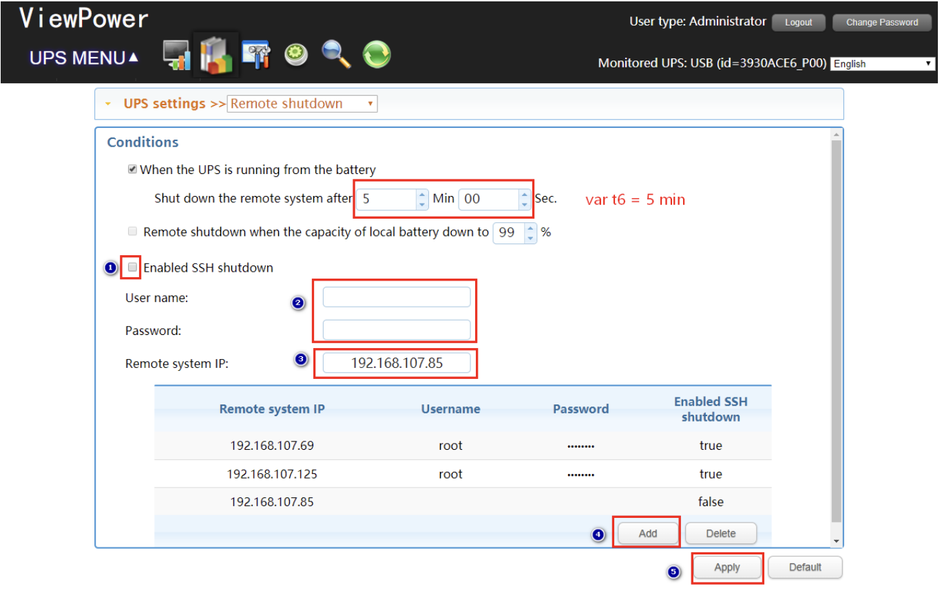- Nếu cần remote shutdown máy chủ khác, có thể theo hướng dẫn dưới. Thường dùng khi máy đó cũng dùng UPS nhưng không có USB để kết nối hoặc máy đó dùng chung UPS với máy hiện tại.