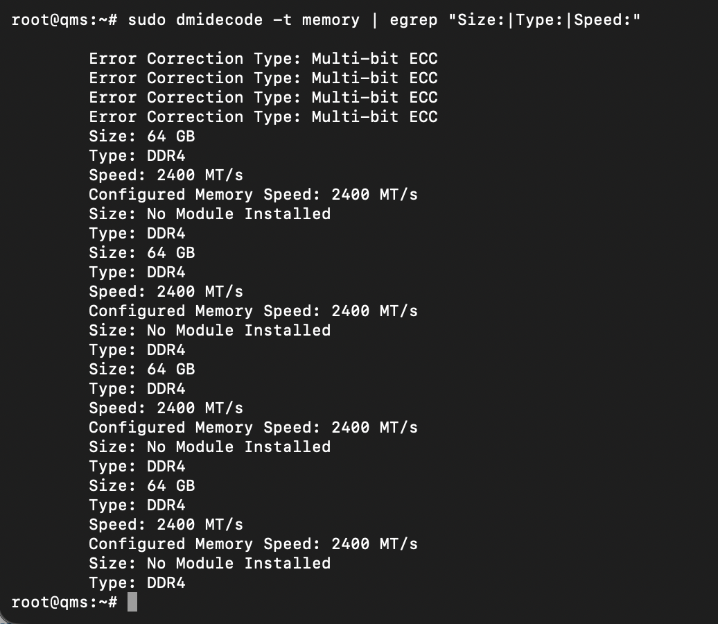sudo lshw -class memory5. Kiểm tra bus thực tế đang chạy (quan trọng với Xeon)
